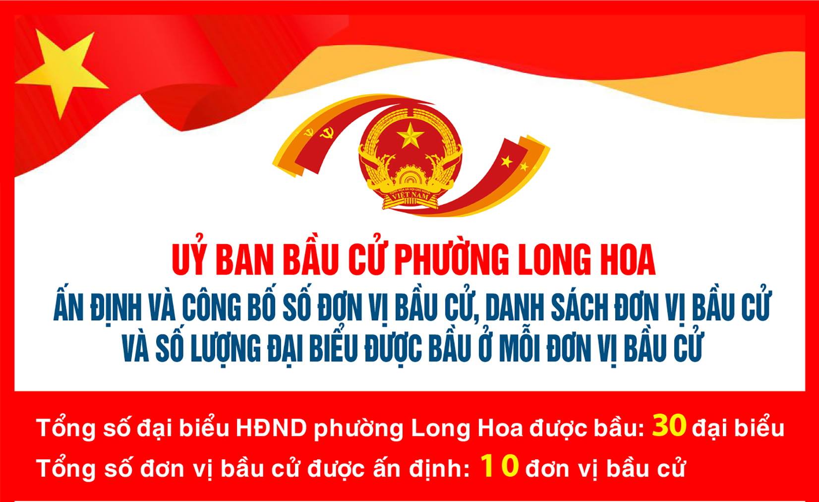 Điều 2. Số đơn vị bầu cử đại biểu Hội đồng nhân dân phường Long Hoa, nhiệm kỳ 2026 - 2031 là 10 đơn...