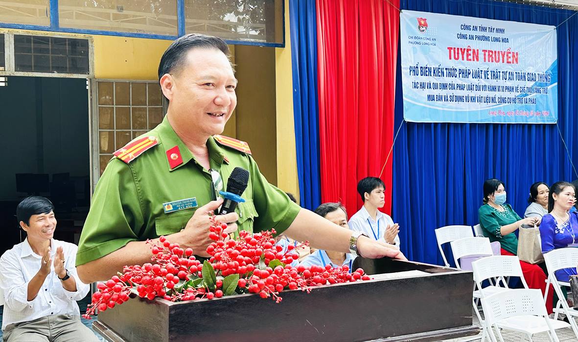 Sáng 2/2, Phòng Cảnh sát hành chính về trật tự, xã hội, Công an Tây Ninh phối hợp với Công an phường Long Hoa tổ chức tuyên truyền phổ biến giáo dục pháp luật về ATGT, sử dụng pháo, vật liệu nổ......