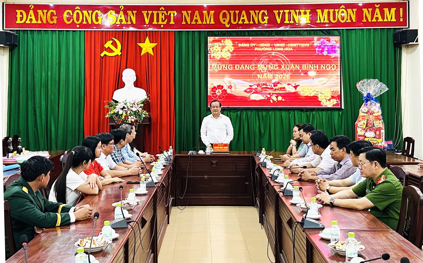 Tối 16/2, Đoàn cán bộ, lãnh đạo phường Long Hoa do Bí thư Đảng uỷ, Chủ tịch HĐND phường Nguyễn Thị Thu Hiền làm Trưởng đoàn đã thăm, động viên, chúc Tết các đơn vị làm nhiệm vụ trực Tết trên địa bàn.